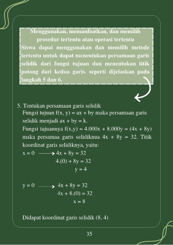 maka persamaa garis selidiknua 4x + 8y = 32. Titik