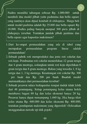 olshopnya tersebut. Tentukan jumlah jilbab pashima dan