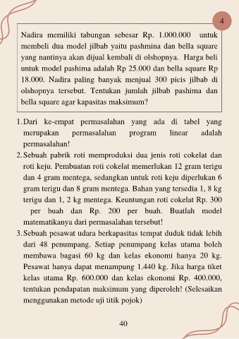 terigu dan 1, 2 kg mentega. Keuntungan roti cokelat Rp. 300