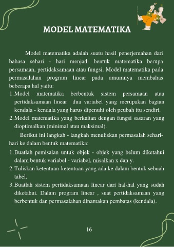 persamaan, pertidaksamaan atau fungsi. Model matematika pada