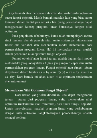 Penjelasan di atas merupakan ilustrasi dari materi nilai optimum