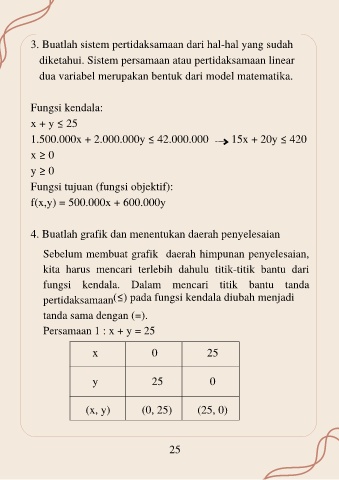 3. Buatlah sistem pertidaksamaan dari hal-hal yang sudah