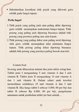 garis selidik menunjukan maksimum fungsi tujuan. Titik
