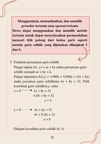 maka  persamaa  garis  selidiknua  4x  +  8y  =  32.  Titik