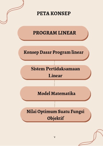 PETA KONSEP PROGRAM LINEAR Konsep Dasar Program linear Sistem Pertidaksamaan Linear Model Matematika Nilai Optimum Suatu Fungsi Objektif v