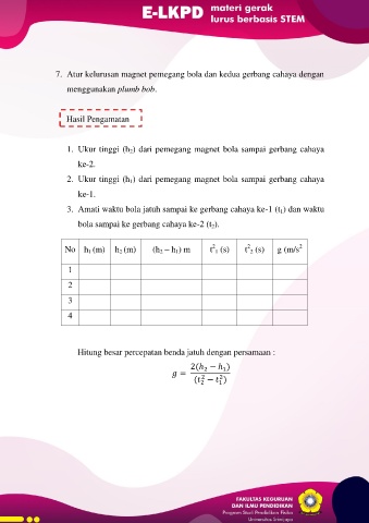 1. Ukur tinggi (h ) dari pemegang magnet bola sampai gerbang cahaya