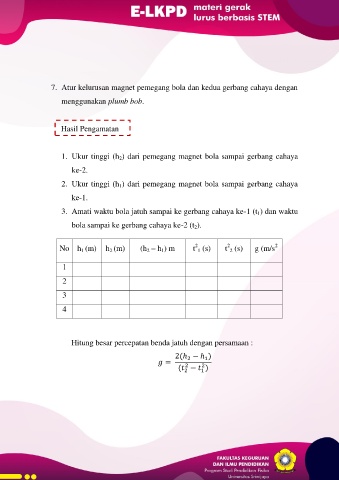 1. Ukur tinggi (h ) dari pemegang magnet bola sampai gerbang cahaya