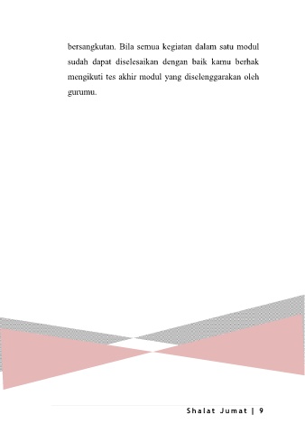 bersangkutan. Bila semua kegiatan dalam satu modul sudah dapat diselesaikan dengan baik kamu berhak mengikuti tes akhir modul yang diselenggarakan oleh gurumu. S h a l a t J u m a t | 9