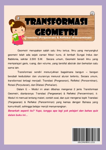 Geometri, diantaranya: Translasi (Pergeseran) & Refleksi (Pencerminan). E-
