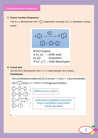 Titik A(x, y) ditranslasikan oleh T( ) menghasilkan bayangan A’(x’, y’) dinotasikan sebagai