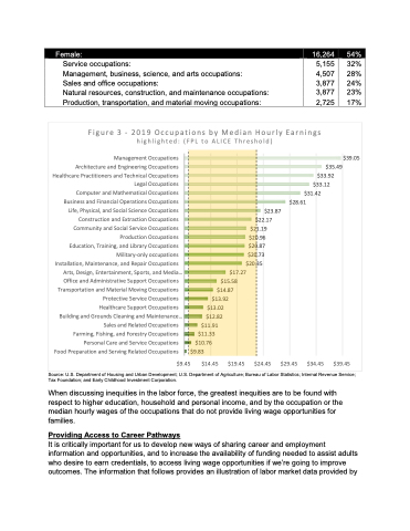 Figure 3 - 2019 Occupations by Median Hourly Earnings highlighted: (FPL to ALICE Threshold)