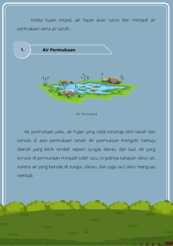 Air permukaan yaitu, air hujan yang tidak terserap oleh tanah dan