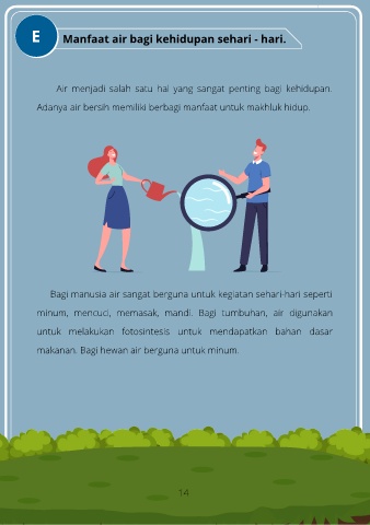 minum,  mencuci,  memasak,  mandi.  Bagi  tumbuhan,  air  digunakan