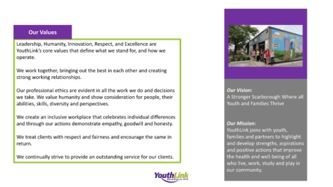 YouthLink’s core values that define what we stand for, and how we