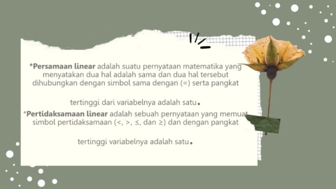 *Persamaan linear adalah suatu pernyataan matematika yang