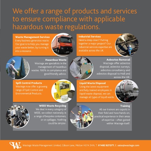 Wastege Waste Management Limited, Gibson Lane, Melton HU14 3HN, T: 01482 821371, E: sales@wastege.com