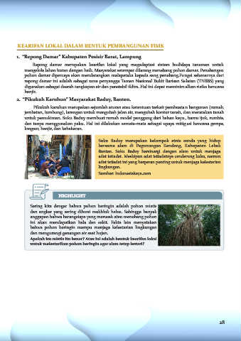 mengelola lahan hutan dengan baik. Masyarakat setempat dilarang menebang pohon damar. Penebangan