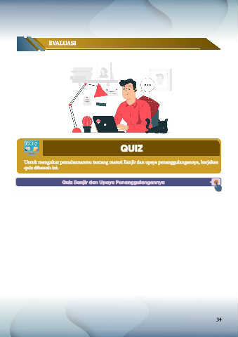 EVALUASI QUIZ Untuk mengukur pemahamanmu tentang materi Banjir dan upaya penanggulangannya, kerjakan quiz dibawah ini. Quiz Banjir dan Upaya Penanggulangannya 34