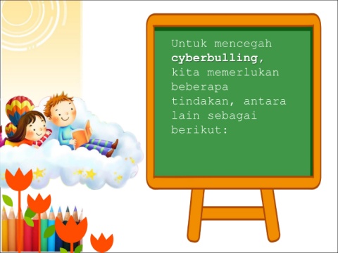 Untuk mencegah cyberbulling, kita memerlukan beberapa tindakan, antara lain sebagai berikut: