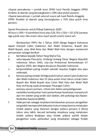 Syarat Pencalonan untuk Pilbup Sukoharjo 2020 :
