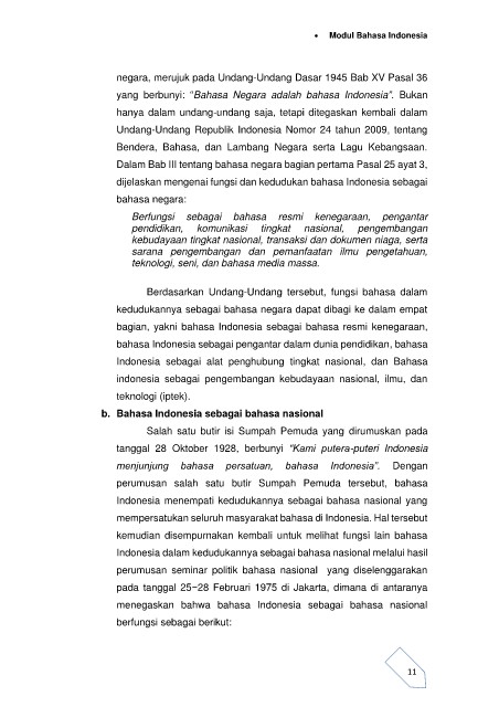 dijelaskan mengenai fungsi dan kedudukan bahasa Indonesia sebagai