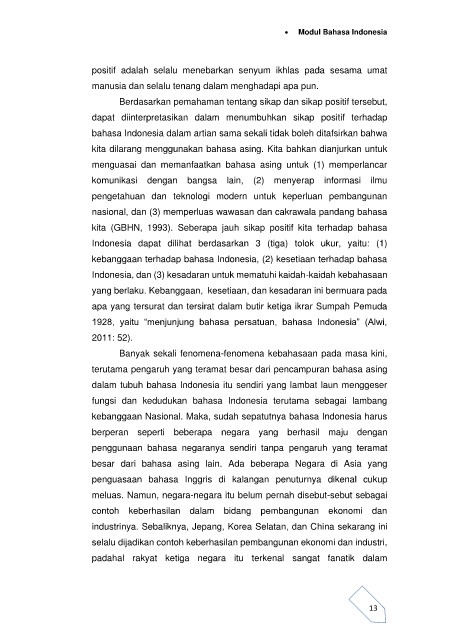 kita (GBHN, 1993). Seberapa jauh sikap positif kita terhadap bahasa