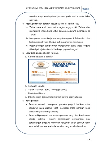 4. Aspek pemberian pensiun sesuai UU No. 11 Tahun 1969