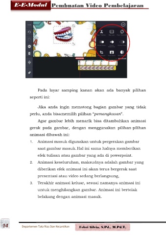 gerak pada gambar, dengan menggunakan pilihan-pilihan