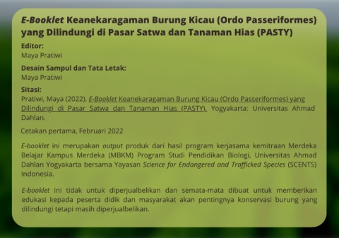 Pratiwi, Maya (2022). E-Booklet Keanekaragaman Burung Kicau (Ordo Passeriformes) yang