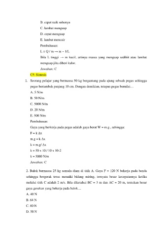 1. Seorang pelajar yang bermassa 50 kg bergantung pada ujung sebuah pegas sehingga