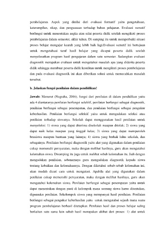 Jawab: Menurut (Nugraha, 2016), fungsi dari penilaian di dalam pendidikan yaitu