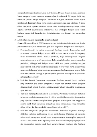 penilaian formatif, penilaian sumatif, penilaian diagnostik, dan penilaian penempatan.