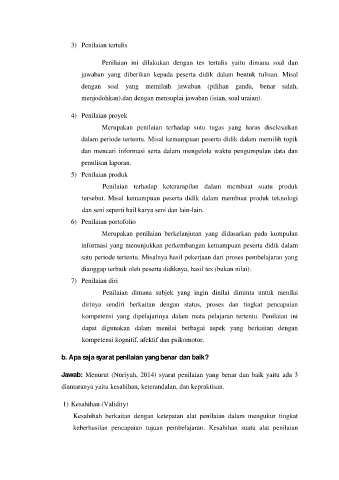 Jawab: Menurut (Nuriyah, 2014) syarat penilaian yang benar dan baik yaitu ada 3