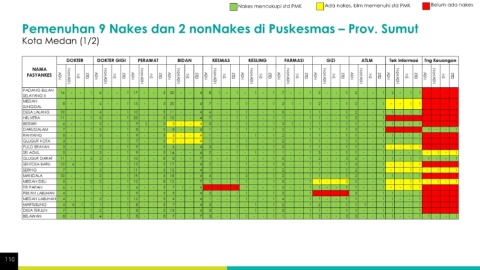 Nakes mencukupi std PMK Ada nakes, blm memenuhi std PMK Belum ada nakes Pemenuhan 9 Nakes dan 2 nonNakes di Puskesmas – Prov. Sumut Kota Medan (1/2) 110