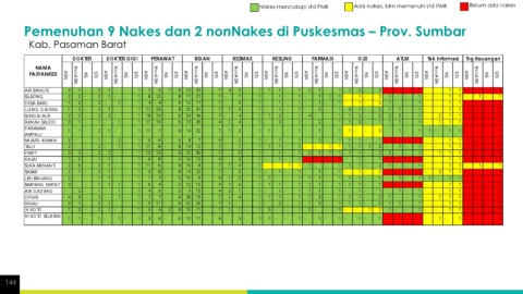 Nakes mencukupi std PMK Ada nakes, blm memenuhi std PMK Belum ada nakes Pemenuhan 9 Nakes dan 2 nonNakes di Puskesmas – Prov. Sumbar Kab. Pasaman Barat 144