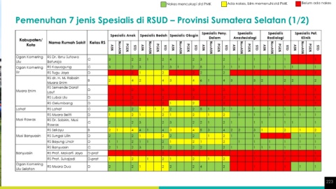 Nakes mencukupi std PMK Ada nakes, blm memenuhi std PMK Belum ada nakes Pemenuhan 7 jenis Spesialis di RSUD – Provinsi Sumatera Selatan (1/2) 223