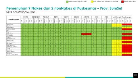 Pemenuhan 9 Nakes dan 2 nonNakes di Puskesmas – Prov. SumSel Pemenuhan 9 Nakes dan 2 nonNakes di Puskesmas – Prov. SumSel