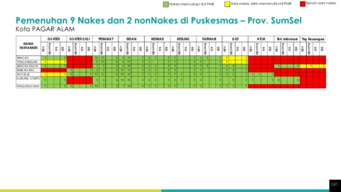 Pemenuhan 9 Nakes dan 2 nonNakes di Puskesmas – Prov. SumSel Pemenuhan 9 Nakes dan 2 nonNakes di Puskesmas – Prov. SumSel