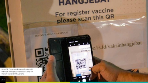 Scan QR Code untuk mendaftarkan diri sebelum mengikuti Vaksinasi Covid-19 malam hari di BPPK Jakarta 364