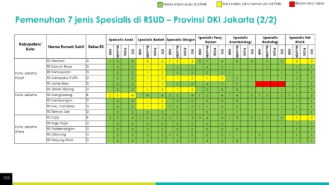 Nakes mencukupi std PMK Ada nakes, blm memenuhi std PMK Belum ada nakes Pemenuhan 7 jenis Spesialis di RSUD – Provinsi DKI Jakarta (2/2) 366