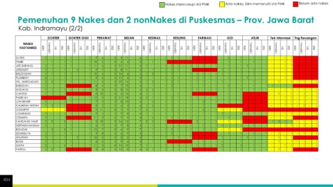 Nakes mencukupi std PMK Ada nakes, blm memenuhi std PMK Belum ada nakes Pemenuhan 9 Nakes dan 2 nonNakes di Puskesmas – Prov. Jawa Barat Kab. Indramayu (2/2) 434