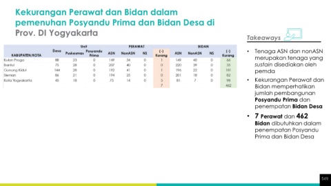 spesialis di Prov. D.I. Yogyakarta pemenuhan Posyandu Prima dan Bidan Desa di