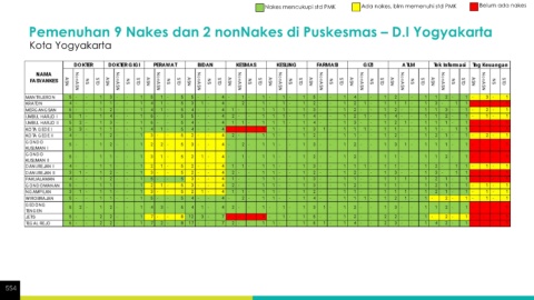 Nakes mencukupi std PMK Ada nakes, blm memenuhi std PMK Belum ada nakes Pemenuhan 9 Nakes dan 2 nonNakes di Puskesmas – D.I Yogyakarta Kota Yogyakarta 554
