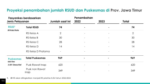 Proyeksi penambahan jumlah RSUD dan Puskesmas di Prov. Jawa Timur