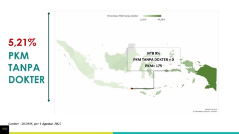 5,21% PKM PKM TANPA DOKTER = 0 NTB 0% TANPA PKM= 175 DOKTER Sumber : SISDMK, per 1 Agustus 2022 680