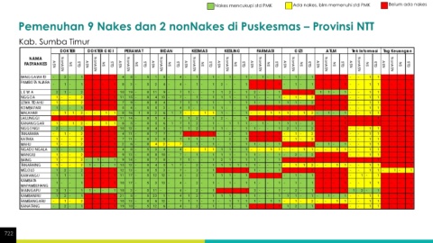 Nakes mencukupi std PMK Ada nakes, blm memenuhi std PMK Belum ada nakes Pemenuhan 9 Nakes dan 2 nonNakes di Puskesmas – Provinsi NTT Kab. Sumba Timur 722