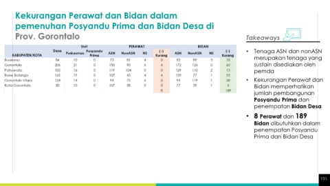 spesialis di Prov. Gorontalo pemenuhan Posyandu Prima dan Bidan Desa di