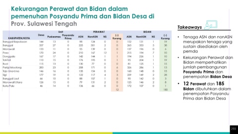 spesialis di Prov. Sulawesi Tengah pemenuhan Posyandu Prima dan Bidan Desa di