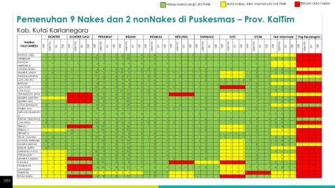 Nakes mencukupi std PMK Ada nakes, blm memenuhi std PMK Belum ada nakes Pemenuhan 9 Nakes dan 2 nonNakes di Puskesmas – Prov. KalTim Kab. Kutai Kartanegara 384