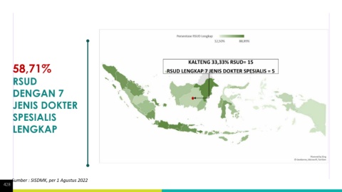 KALTENG 33,33% RSUD= 15 58,71% RSUD LENGKAP 7 JENIS DOKTER SPESIALIS = 5 RSUD DENGAN 7 JENIS DOKTER SPESIALIS LENGKAP Sumber : SISDMK, per 1 Agustus 2022 428
